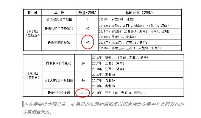 國(guó)家最低收購價(jià)水稻小麥各增加100萬噸投放量,起拍價(jià)格不變,銷售時(shí)間不變。其中,水稻增加到217.2萬噸 中晚稻提前一個(gè)月上場(chǎng)。2020年中晚稻4月17日開拍,較去年提前了1個(gè)月有余,也比市場(chǎng)預(yù)期的4月下旬早了幾天。從時(shí)間上可以看出,政府這次反應(yīng)較快,平抑糧價(jià)的決心很大!