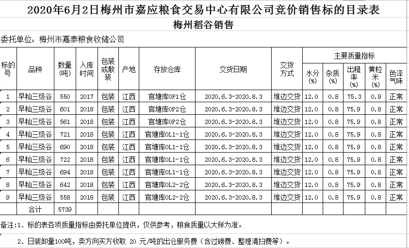 交易時(shí)間和地點(diǎn):2020年6月2日(星期二)上午10時(shí)。廣東省梅州市彬芳大道南161號(hào)梅州市糧食交易中心3樓。