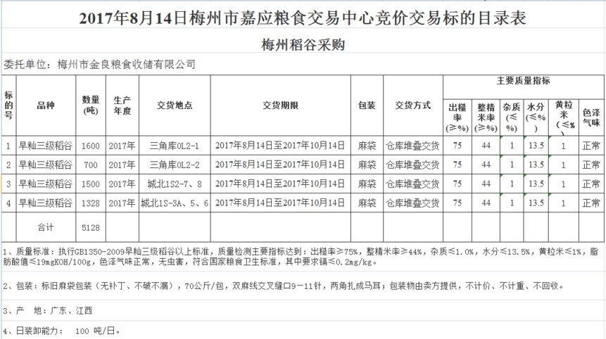 交易地點(diǎn):廣東省梅州市梅江區(qū)彬芳大道南161號(hào)梅州市糧食交易中心3樓